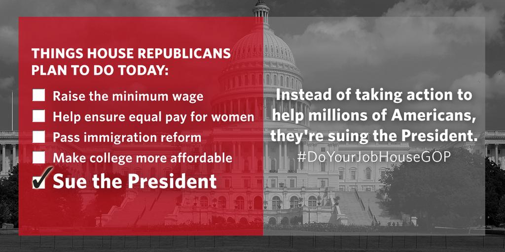 Moving forward to today's activities by the Koch/ALEC GOP House which is the day after the GOP in the House voted to sue the President over the same thing they supported President Bush on with his Drug Prescription Plan -- delay a portion for a year. This is why the Koch Bros/ALEC GOP House led by Speaker Boehner stands today as the most worthless house in my lifetime and probably the modern era. Want an example of worthless -- try the Border Bill which Boehner couldn't get passed today and then urges the President to take action. That is the same President Obama that Boehner/House GOP are suing for taking action delaying a small portion of ACA for a year. Confused yet? Maybe this article from The National Memo will help explain what has happened today: